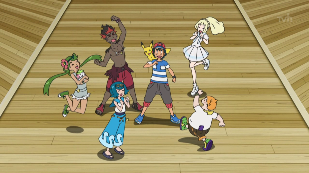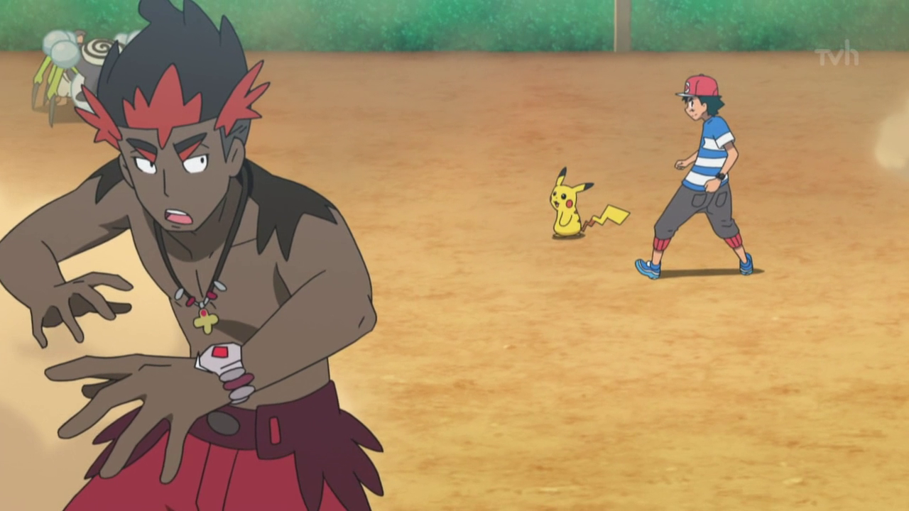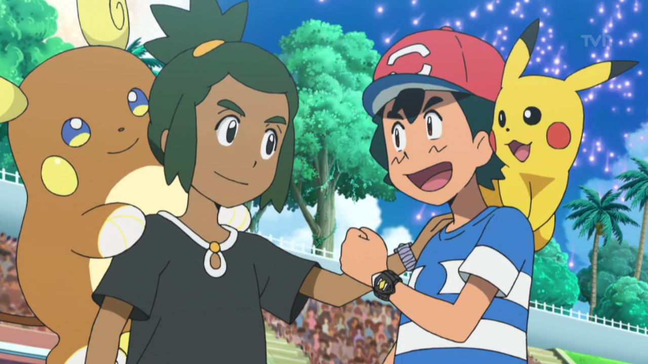 Ash Pikachu vencen a Sudowoodo. ¡Y también a un Poliwrath y a un Araquanid gracias al aviso de Kiawe!
