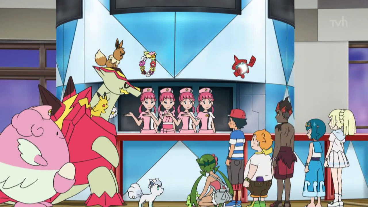 Las Enfermeras Joy de todas las islas están aquí reunidas para curar los Pokémon de los participantes.