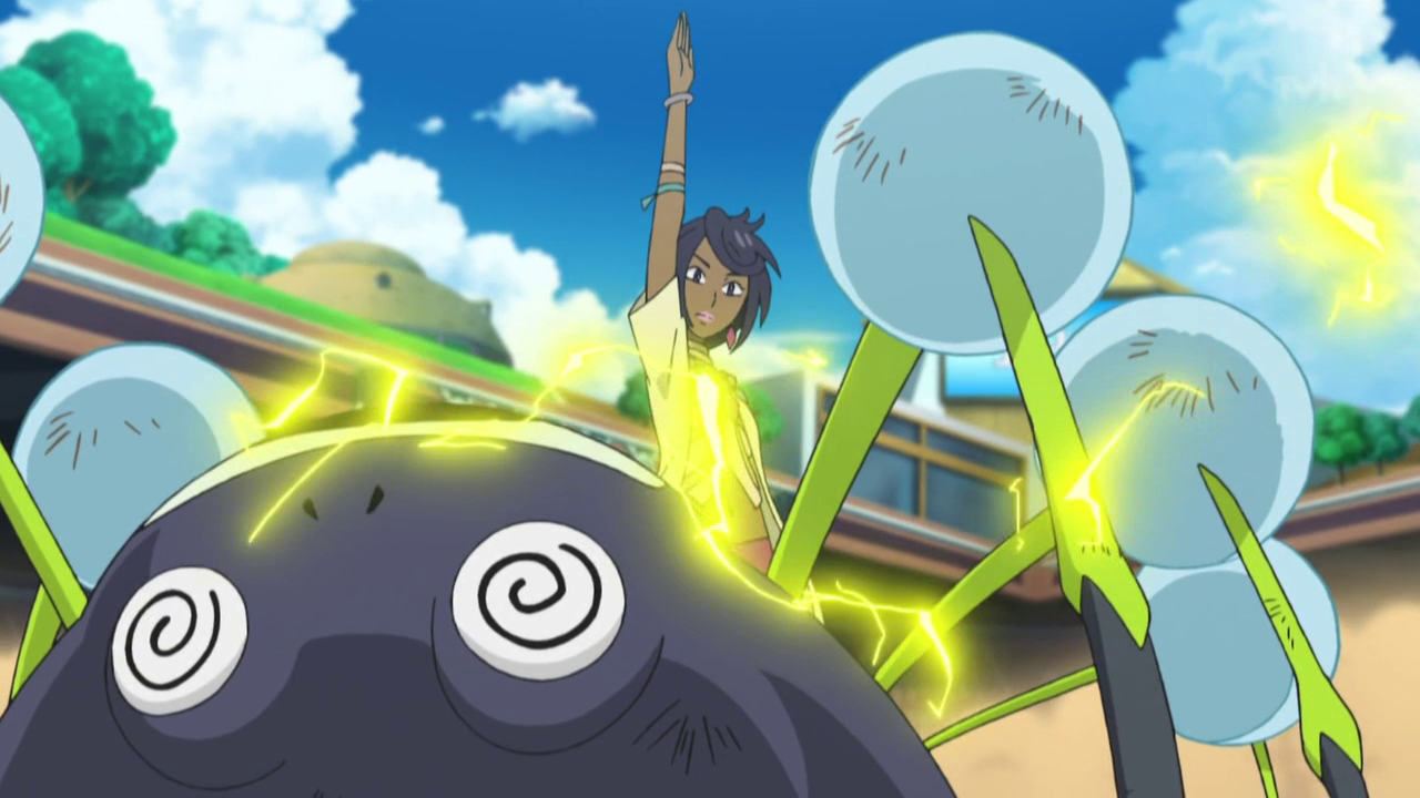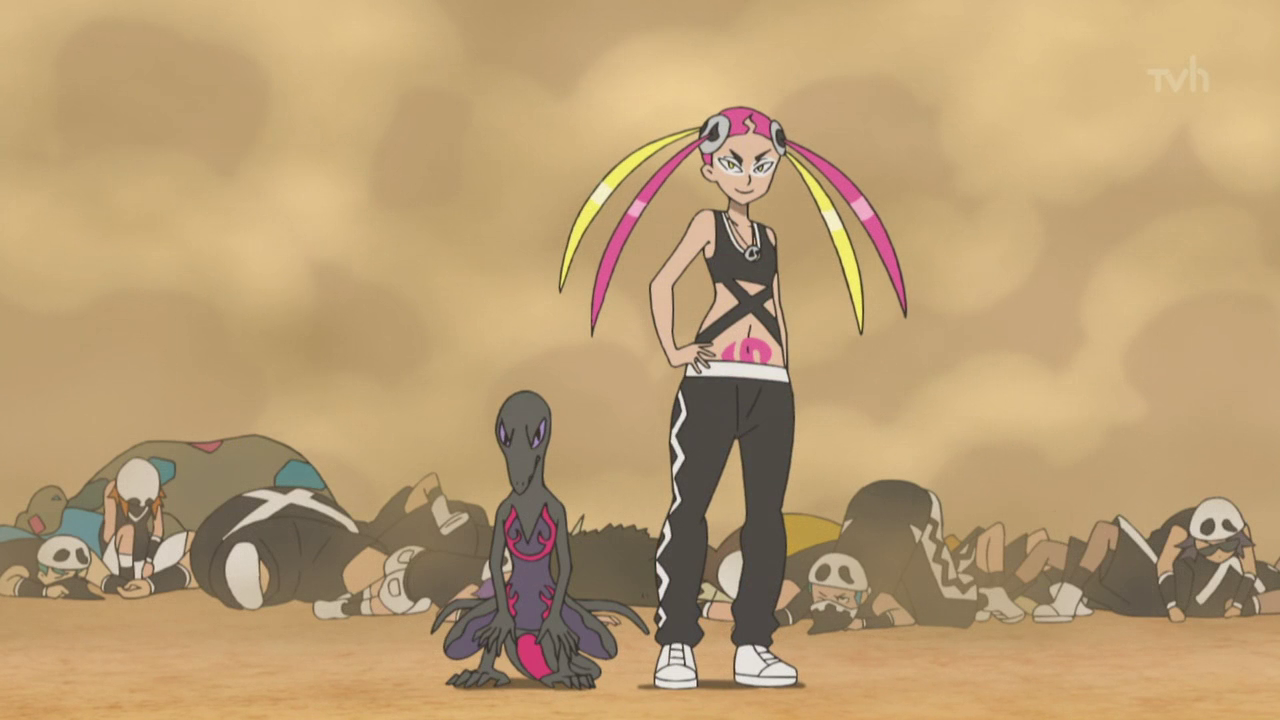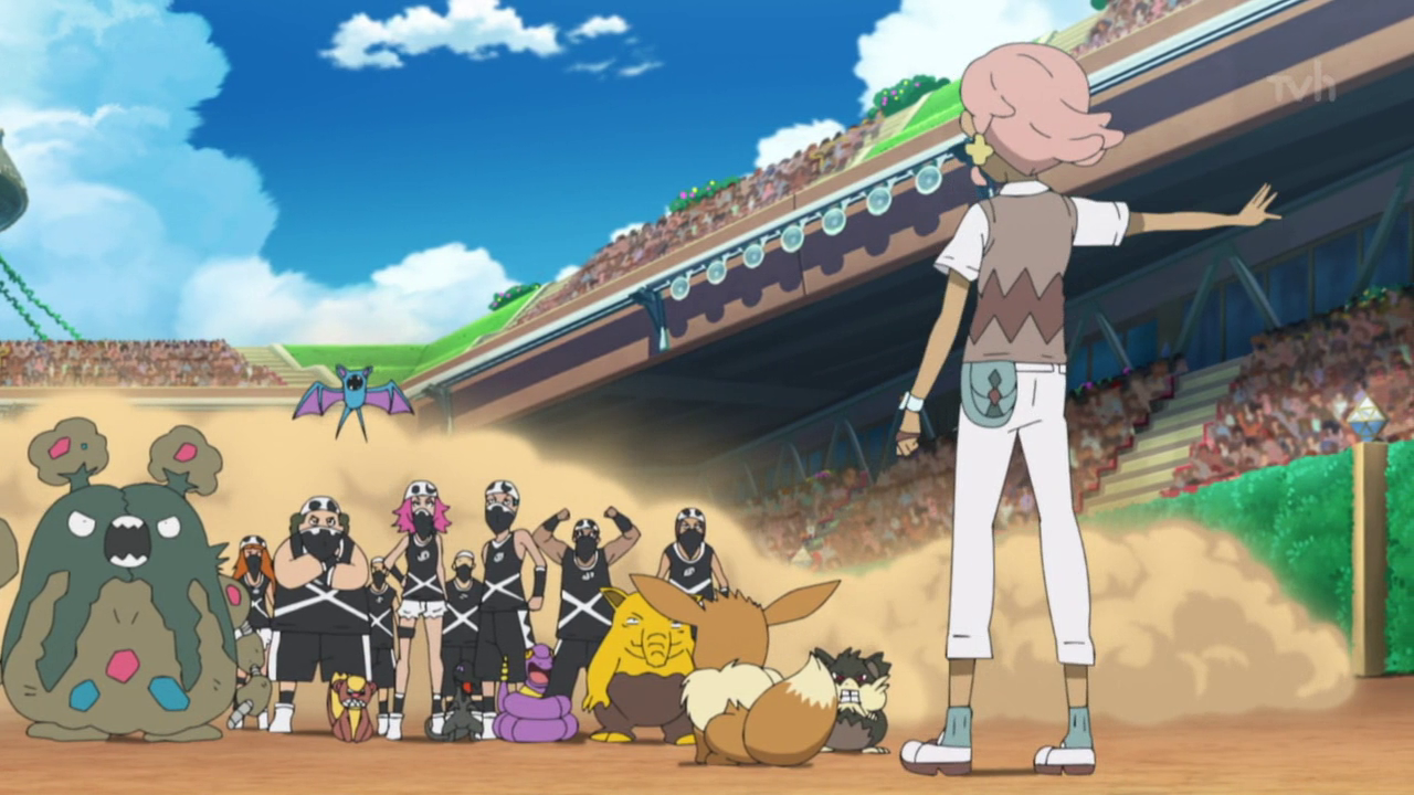 Pero su Eevee usa Última Baza y los manda a volar. Entonces, ante él aparece Francine con Salazzle.