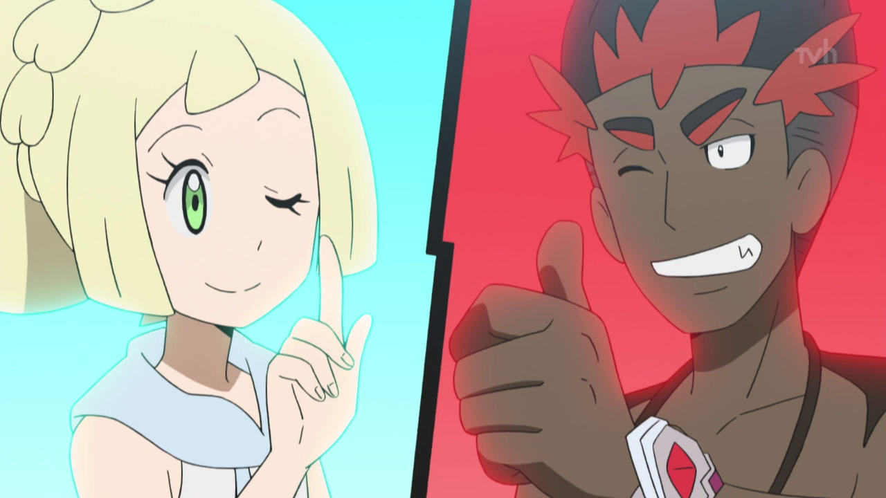Kiawe Turtonator junto a Lylia Nivi derrotando a Salamence. Por otro lado, Lulú Nereida se cubren las espaldas también.