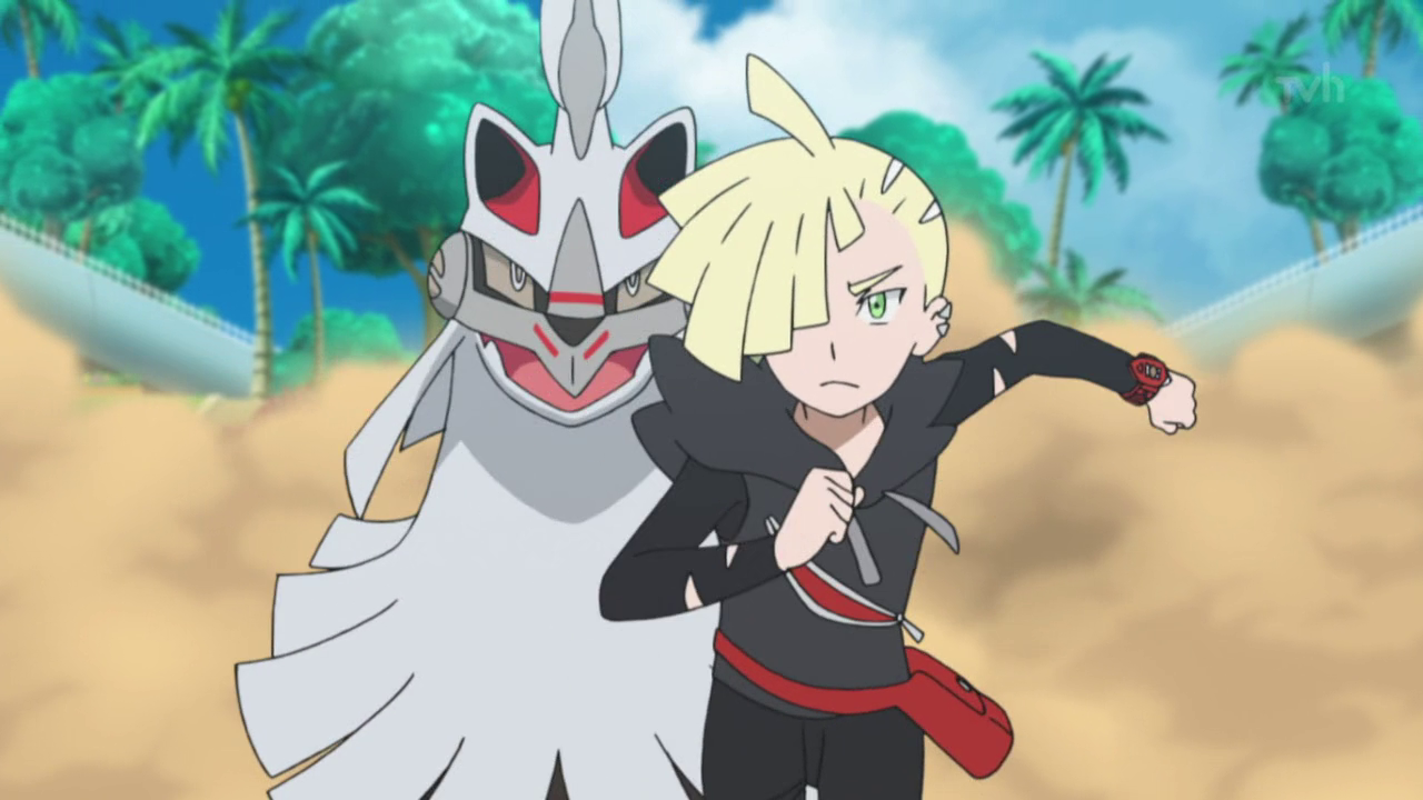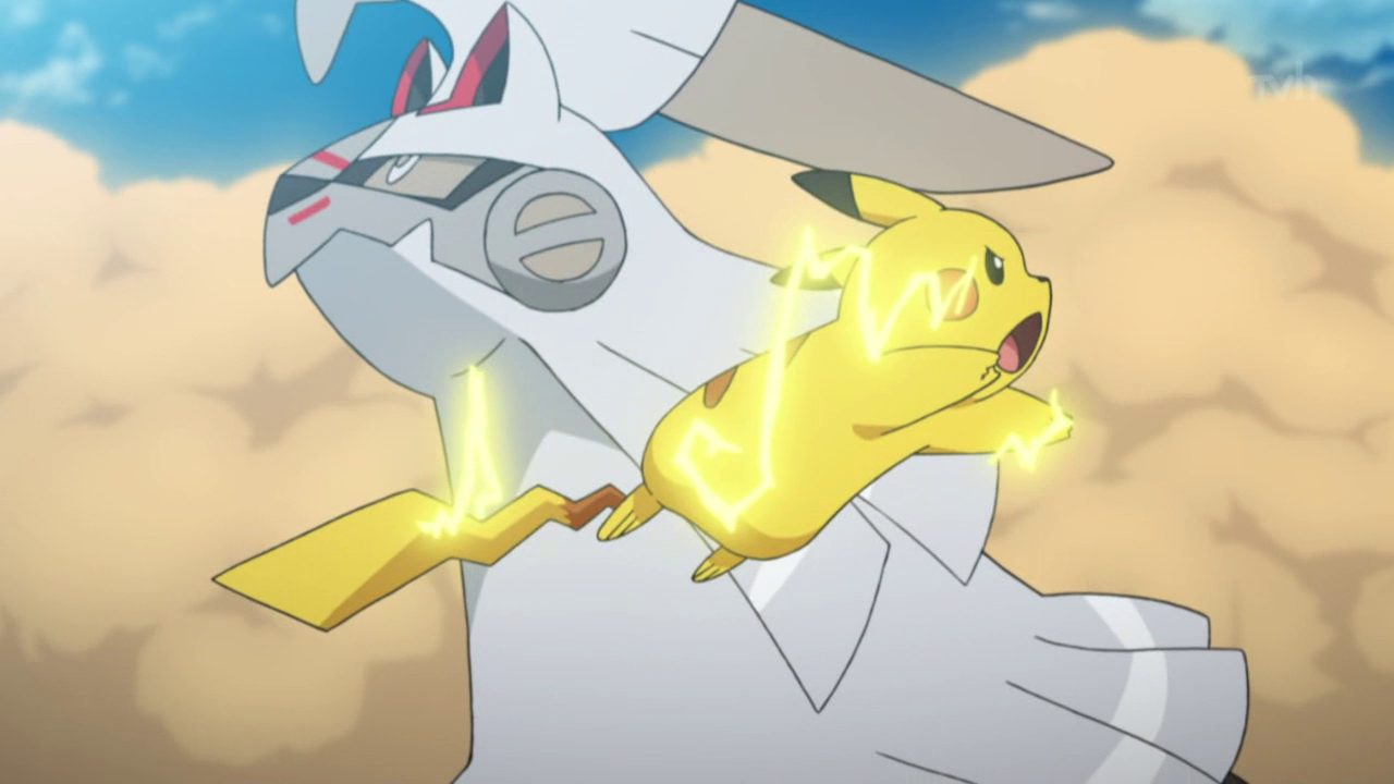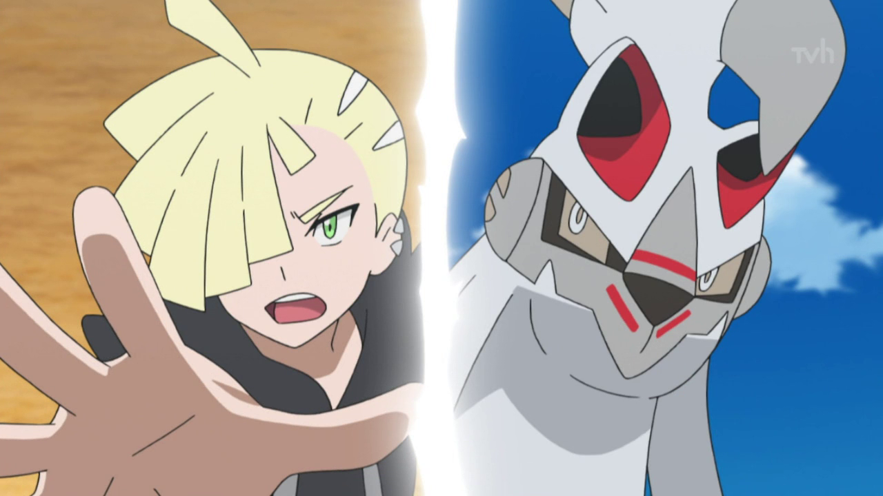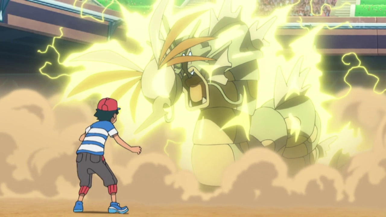 El Pikachu de Ash usa Rayo para derrotar a Skarmory GyaradosKiawe Turtonator se defienden de un Sandslash Alola.
