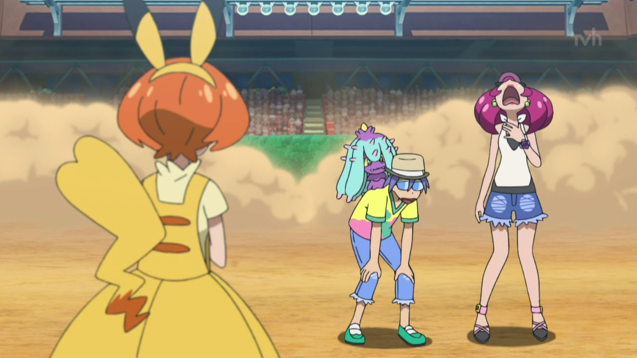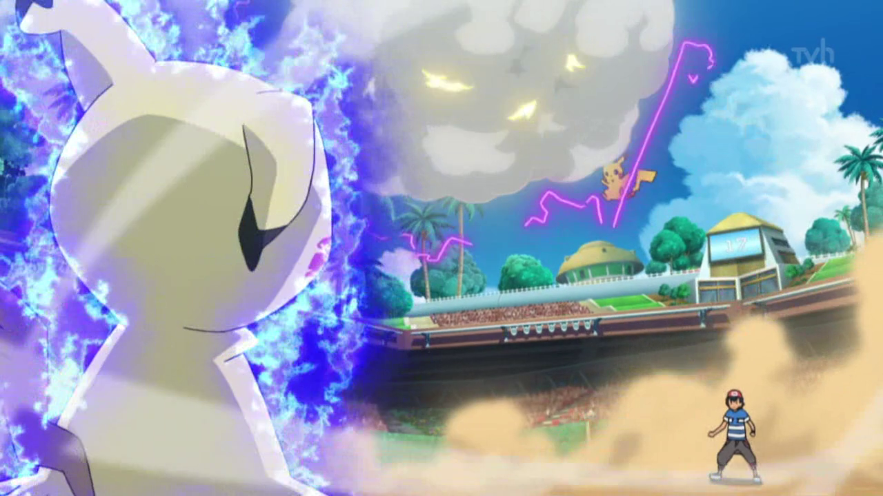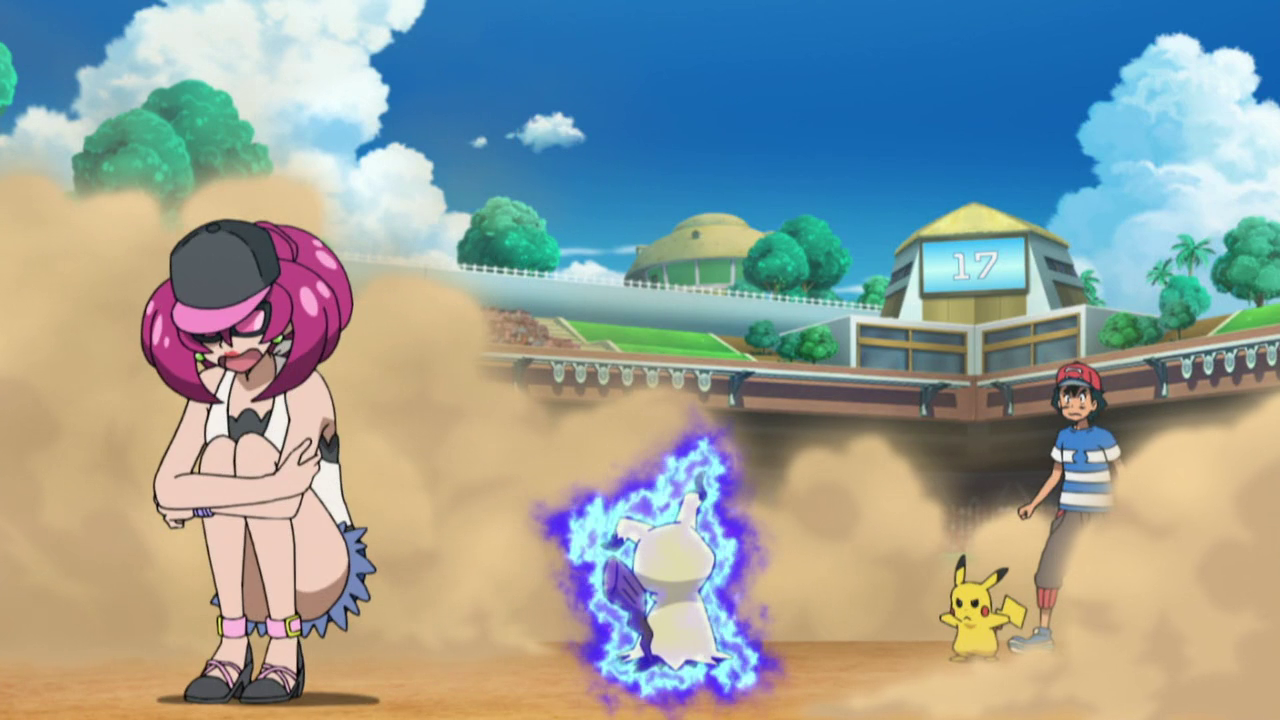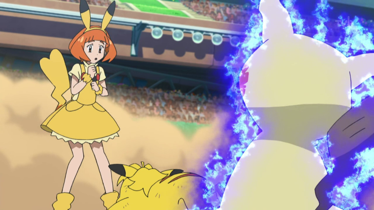 Quien a su vez cae ante la Bola Sombra de Mimikyu, el «mata Pikachus». El plan del Team Rocket era evitar combatir, pero Mimikyu tiene sed de venganza contra Pikachu.