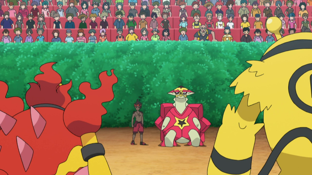 El episodio comienza con Ash caminando con sus amigos hasta el Estadio Manalo.