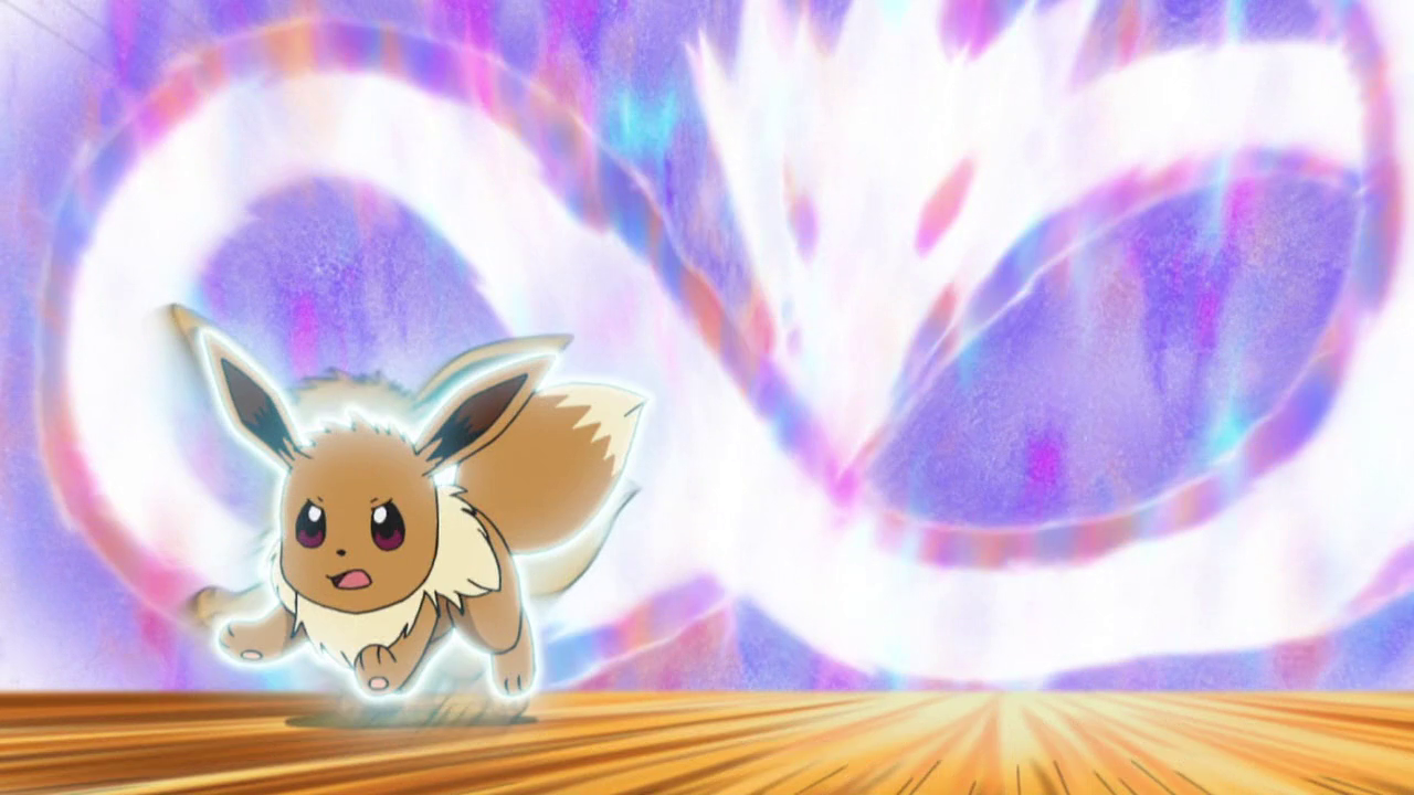 Eevee se lastima, Liam le pide huir con Ataque Rápido del enfrentamiento directo y cuando se voltea usa Rapidez paga salir victorioso.