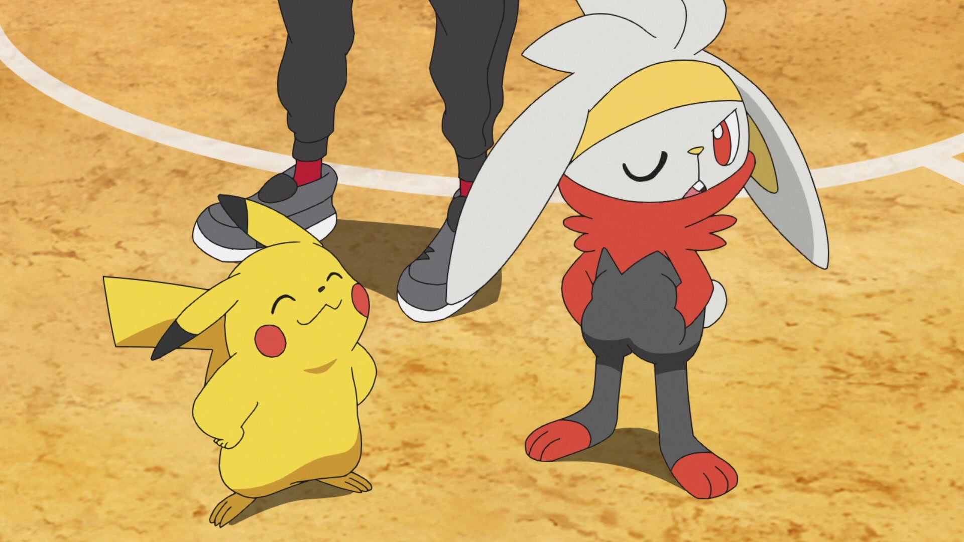 Raichu acaba demostrándoles su poder y estampa a Pikachu contra el techo del recinto. Lo atrapa en el aire con su cola y lo lanza. Raboot abre el ojo.